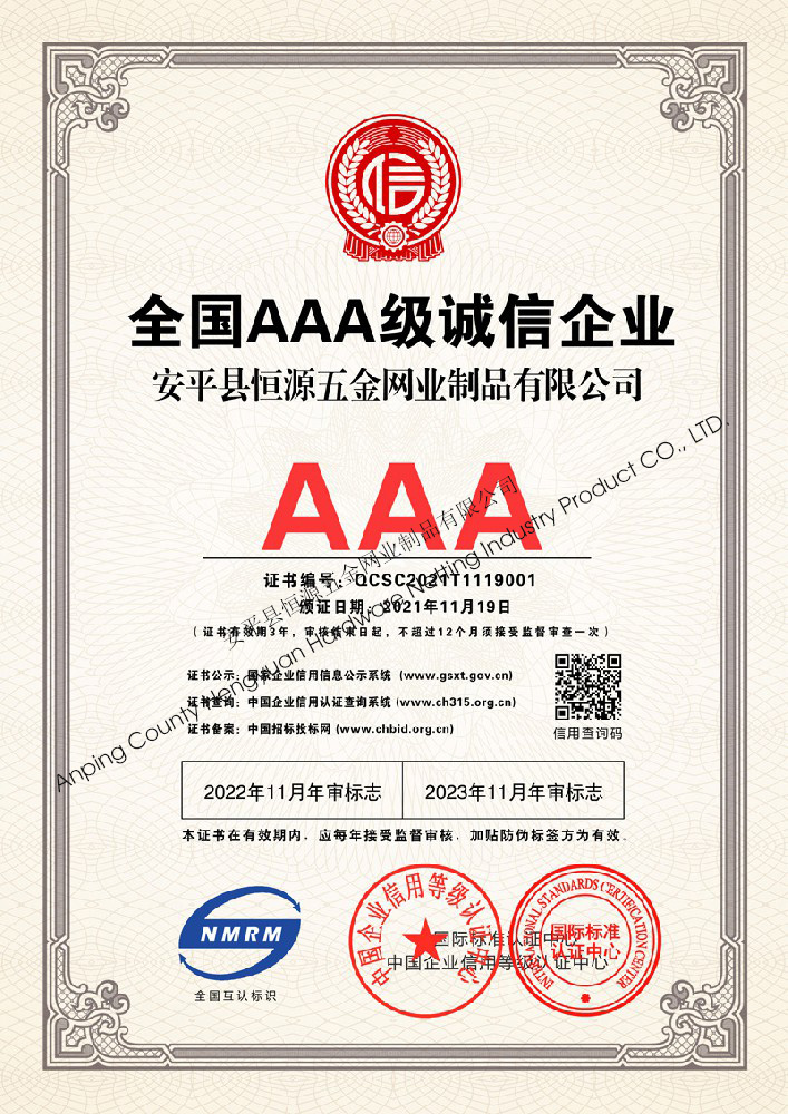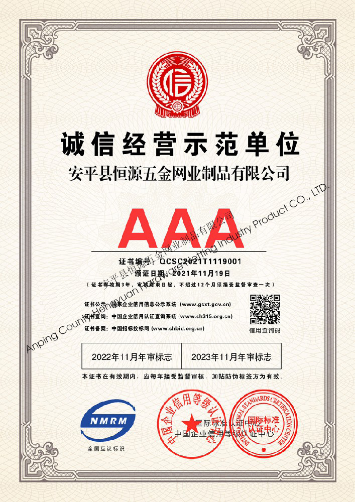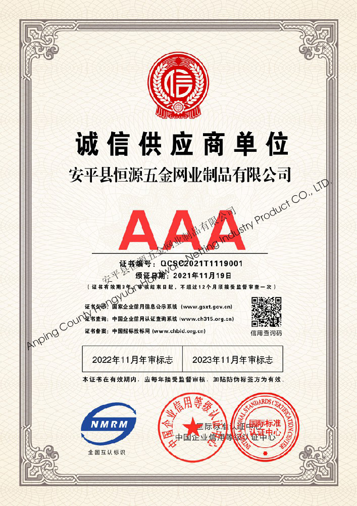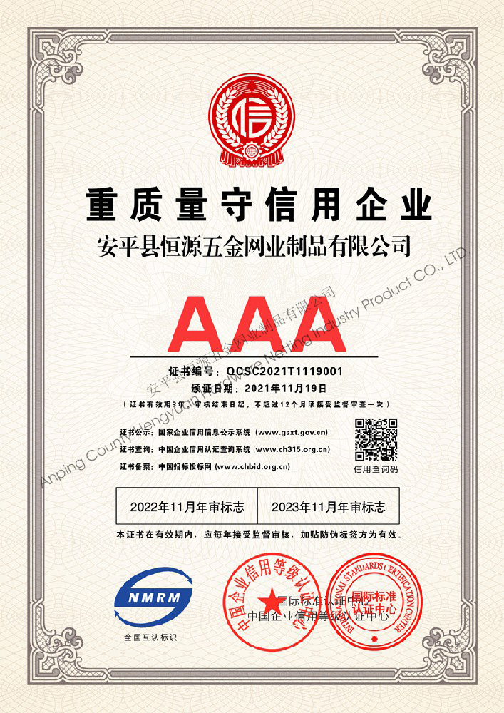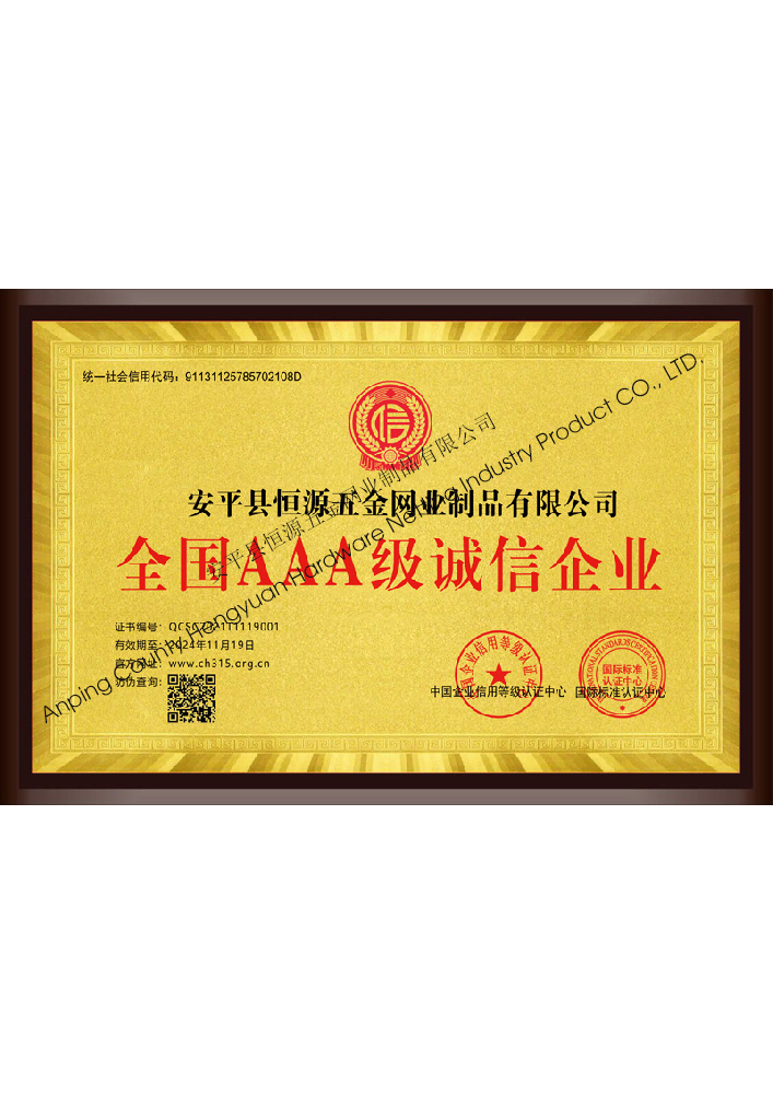 多年來,安平縣恒源五金網業制品有限公司堅持“科技興企、質量立業”的經營理念和“誠心為本、客戶至上”的合作宗旨,優(yōu)化生產工藝,打造優(yōu)質產品,提供完善的服務,受到國內外客戶的一致好評,產品行銷全國各地,并出口美國、德國、韓國、日本、臺灣等國家和地區。